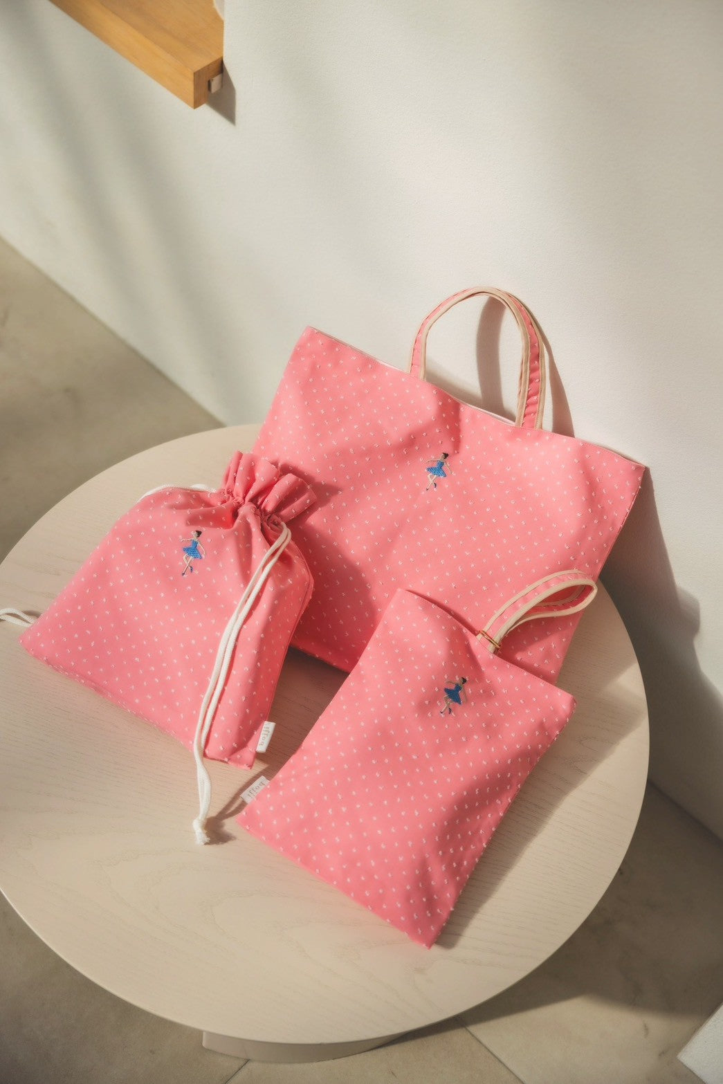 バレリーナ刺繍スクールグッズ3点セット/ストロベリードット
